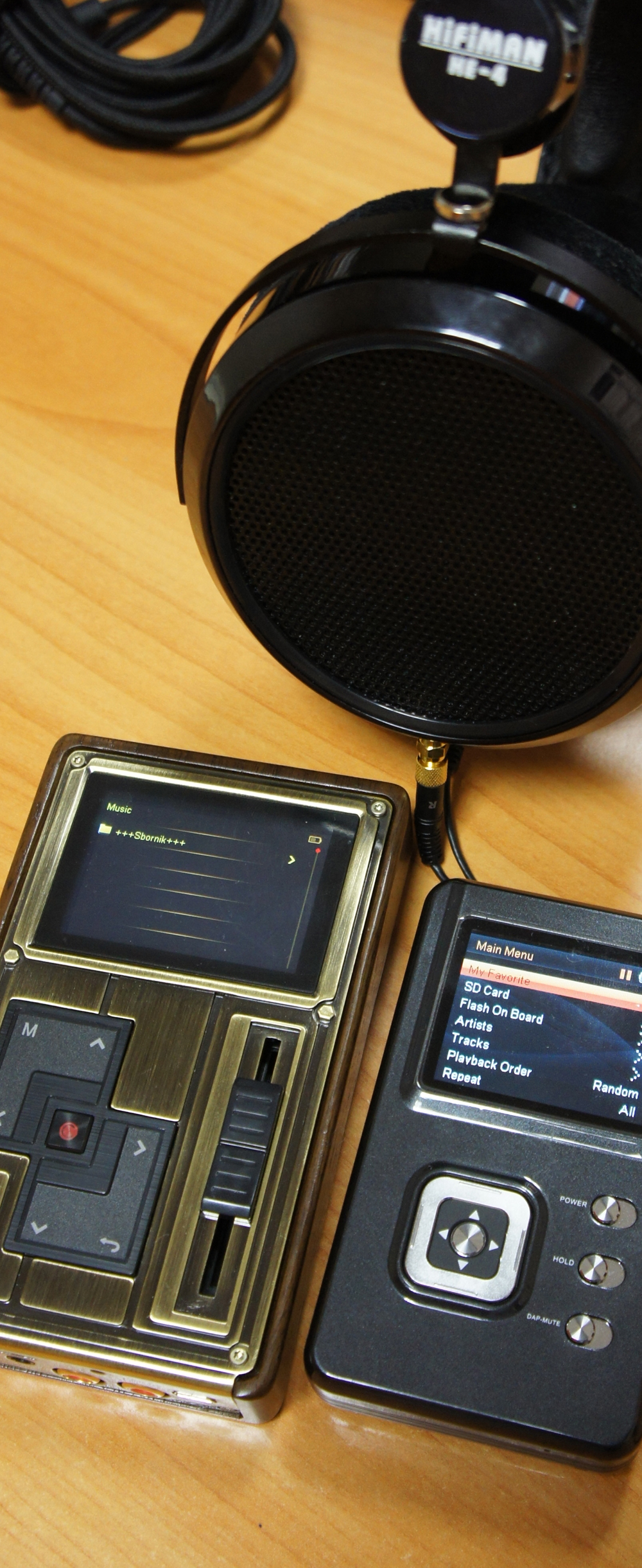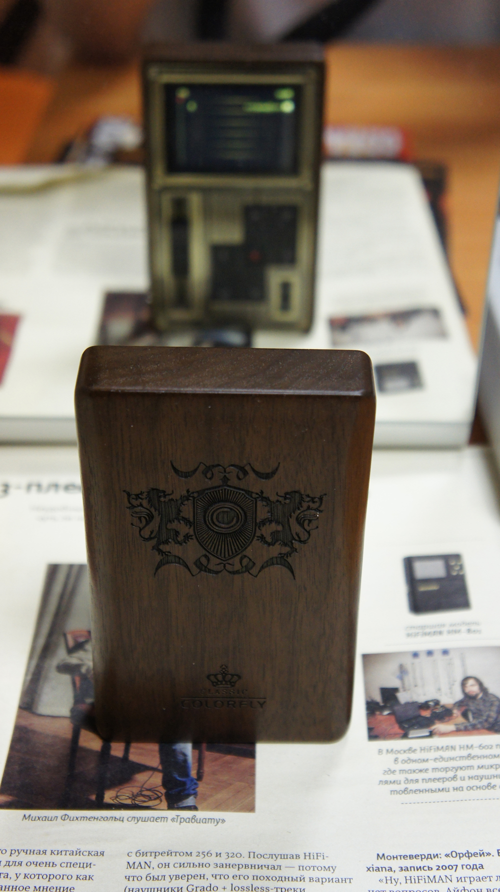 в базовой версии или чип C4, специально разработанный Colorfly в сотрудничестве с производителем аудиочипов, в High-End версии . Немного графомании. Можно пропустить Некоторое время назад столкнулся с интересным феномено. Китайцы настолько разогнались с постоянным выпуском новинок и усиленным пропиариванием "новых технологий" каждые полгода. Причем делают это настолько эффективно, что те, кто года три назад еще плевались при словах "китайский плеер", и верили, что китаю только и дано, что дублировать западное на уровне "наколеночного производства, те самые личности истиво верят, что китайские плеера размером с коробок спичек и соразморной стоимости способны выдавать волшебный звук качества "хиенд". Ну и меня посетила мысли послушать те плеера, которые выходили на заре портативного хайфая. Давно не слушал... Мне стало интересно, как в целом они себя показывают. И, надо сказать, очень даже рад, что моё основное мнение (о развитии портативного аудио, состоящее в том что скорость выпуска новинки, дешевые понты в рекламке и ставка не на меломанов ценящих звук а на лохов верящих в супер-технологии типа 32-битного звука, заменила качество напрочь) - оправдалось. В общем слушаю сейчас колор и, повторюсь, убеждаюсь, что начальный этап развития портатива был куда более "звуковым". Наверное это логично. До того как начать разводить доверчевых читателей рекламы, надо было внедрить в сознание потребителя, что портатив и качество понятия совместимые. Невозможно было, после дешевых ковонов сразу выпускать АК и подобную ему продукцию - народ не было готов. А так, через ауиофилов постепенно... И колор C4PRo - очень неплохой представитель тоговремени. Даже сейчас он смотрится куда лучше чем большинство его собратьев по цеху. Итак. Старое описание колора я удалил, просто потому, что оно почти полностью совпадает с моим нынешним впечатлением, но в нем присутствует много сравнений с аппаратами ныне не существующими, в чем нет смысла. А вот в чем есть смысл, так прогнать аппарат на вышедших в последнее время наушниках типа изофонов или гвоздиков. начну с Izophones-30, просто потому, что этот пункт короче. Плеер хоть с трудом но "их танцует". Как ожидалось, не хватает напора на низах, пампа, удара, но в остальном диапазоне даже на 3/4 ползунка громкости ушки играют очень толково и громко (на мой вкус). Нету песка, нету звона, каких-либо других заметных искажений. В общем - весьма на дурно! На гвоздиках-1 (как ни странно, хоть я и люблю двушки, тестирую часто именно на единичках, так как они "ровнее") вообще, надо сказать прямо "рубит" в мясо любой драйв и метал. На фоне современного тяготения к мягкотелям рафинированным неоформленным низам от Сабры и АКМ - у колора низы просто каменные - очень даже плотные, тугие, упругие, вполне себе "лупящие" а "всплескивающие". Хотя да - есть небольшая сколнность к "обрезиниванию" и небольшому избытку "густоты", накачке нч фоном. Но весьма и весьма умеренная. Если честно, на фоне современных новинок - просто отлично! Да и заметно в основном на мелодиях где нч сами по себе имеют "фонящий" характер. Впрочем, спорить нет смысла - некая манерность на НЧ есть, но очень и очень ненавязчивая. Про СЧ и говориь нечего - они отличные сами по себе, проблем не заметил. Из особенностей отметил бы, что может быть есть небольшая склонность к подъярчиванию, небольшое подчеркивани