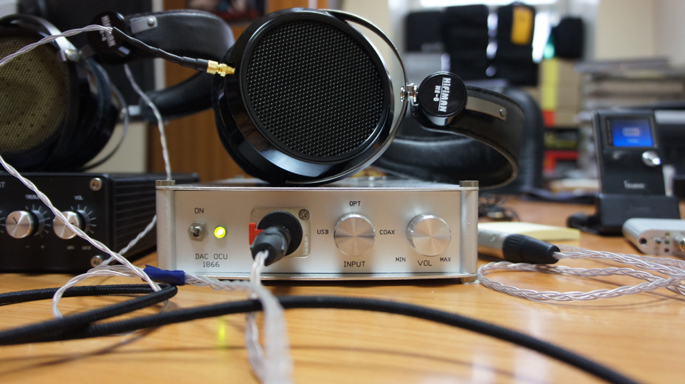 Обзор внешнего цапа: MyST DAC1866OCU. Описание от производителя: - Мультибитный(16 бит R-2R) DAC преобразователь AD1866. - Раздельное питание аналоговой и цифровой части устройства. - Оптронная развязка USB и коаксиалных входов от цепей схемы. - Отсутствует передискретизация (oversampling) и цифровая фильтрация музыкального сигнала. - Аналоговый фильтр Бесселя 4-го порядка, для сохранения скоростных характеристик и атак. (Внимание! Предусмотрена возможность отключения фильтра вообще). Внешний вид и конструкция. Цвет корпуса серебристо-матовый(у БП черный). Корпус вполне качественный, есть мелкий люфт на боковых стенках, но не критичный. И это не потому, что плохо собран, а это особенность корпуса, так как боковые стенки съемные. Материал корпус из легкого металла, поэтому и вес небольшой. Размеры цапа без БП: глубина х ширина х высота = 26.8 х 17 х 5.8 Размеры БП: глубина х ширина х высота = 12 х 8.0 х 4.5 Габариты корпуса относительно небольшие, и удобны тем, что занимают мало места и легко встраивается в интерьер. Провода черные, сетевой кабель с нестандартным разъемом. Верхняя крышка прикручена на 4 винта, достаточно немного ослабить отверткой и дальше винты легко откручиваются пальцами. На БП имеется выключатель питания, и индикатор красного цвета. Слева на передней панели корпуса есть тумблер вкл/выкл питания, переключается верх/вниз. Рядом находится индикатор питания, который горит неярким зеленым светом, и это гут. А то у некоторых китайских аппаратов индикатор делают ярким, аж слепит глаза. Разъем под наушники: джек 6.5 с защелкой. Поэтому чтобы вытащить штекер наушников требуется нажать пальцем на красный блокиратор. Спереди находятся две ручки: - справа ручка регулировка громкости - а по центру, ручка для переключения входов, с соответствующими надписями: USB > OPT > COAX У цапа имеются два цифровых входа: USB, оптический и коаксиальный. И два аналоговых выхода: линейный RCA(не регулируемый) и джек 6.5 для наушников со встроенного усилителя. В комплекте прилагается усб-кабель. Звучание. DAC 1866(далее, коротко: 1866) с отключенным цифровым фильтром. При прослушки были задействованы: - звуковая карта: M-Audio Audiophile 192(далее, коротко: Audiophile 192), внешний цап Dr.Dac 2 на 3*627(далее, коротко: DD2). - наушники: AKG K271 Studio, Sennheiser HD 650, HiFiMan НЕ-5. - усилители: Lehmann Audio Black Cube Linear(DIY-вариант с модом, далее коротко: Lehmann) и Семигор. - медные межблочники: Analysis-Plus Blue Oval-In, Transparent Music Chord, и самодельный CANARE L-2T2S с разъемами F-09. Звучание естественное, натуральное, приятное, не резкое, и при этом прозрачное и без потери детальности. Тональный баланс, так и хочется назвать нейтральный…. У многих слово “нейтральный” вызывает ассоциации, типа скучный, неинтересный звук. Но в данном случае это нет так, музыка подается вовлекающее и эмоционально. Бывает, что мультибитный цап играет мягко, но замыленно. В случае 1866 этого нет, звук мягкий(в сравнении с дельта-сигмой, например, с DD2), и при этом с высокой детализацией и прозрачностью. Разрешение на высоком уровне, другими словами, звуковая картина подробная и разборчивая. Сцена у 1866 больше и шире, чем у Meier Audio Corda Stagedac(по памяти)- http://www.doctorhead.ru/catalogue/?i=1322...er=4&inum=2, звучание более открытое, и свободное; звук богаче, деликатней и изысканней. Проработка мелких звуков и деталей на хорошем, я бы даже сказал на высоком уровне, поэтому классика, джаз и подобные жанры звучат интересно и увлекательно. Люб