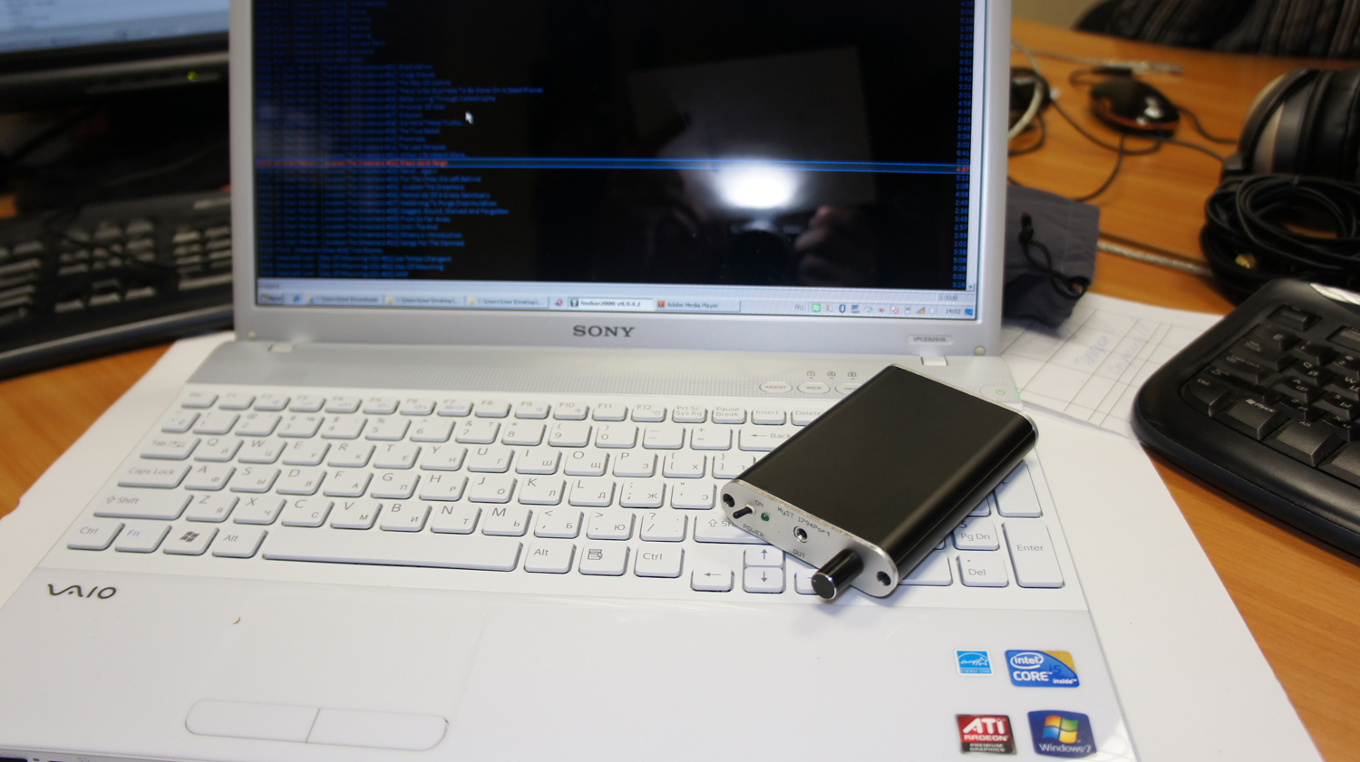 Прилетел ЦАП ко мне через три дня после оплаты, то есть весьма оперативно. До этого я долго мучал Романа по аське многочисленными и разнообразными вопросами касательно звучания, входов/выходов и т.п., на которые он вполне доступно отвечал. За что ему отдельная благодарность. Теперь непосредственно об аппарате. Впервые увидев его, я был сильно удивлён: устройство миниатюрное, размером что-то вроде портсигара или бокса для HDD. Подключив к USB порту и усилку, был удивлён ещё больше. Тракта для прослушивания и тестирования использовалось три: 1) ноутбук → PortaDac 1794u → наушники Sennheiser HD 435 (к этому ЦАПу нужны, конечно, получше, но у меня нету); 2) стационарный комп → линейный выход PortaDac 1794u → интегральный усилитель NAD C355BEE → напольные ас Heco Concerto f15; 3) стационарный комп → линейный выход PortaDac 1794u → интегральный усилитель NAD C355BEE → наушники Sennheiser HD 435. Второй вариант мне понравился больше всех. Пожалуй, это лучший звук, который можно получить с моего компа. Вариант №3 оказался интереснее, чем №1, хотя, если честно, ноутбук тоже теперь «звучит» как заправский хайфайный CD-проигрыватель. (Замечание в скобках: несмотря на негатив Романа по поводу маркетинговости волшебной формулы 24/96, всё же очень хотелось послушать аудио материал в этом формате, тем более что на компутере было кой-чаво ;-). К сожалению, по ASIO и WASAPI вывести 96 КГц foobar2000 не смог, максимум — 48. Зато по DirectStream почему-то смог) (Ещё замечание: ЦАП кино показывает, в смысле озвучивает, в играх и музыкальных программах работает, короче, мультимедия полная) Думал составить отзыв из впечатлений от прослушивания любимых композиций, а потом прикинул, что получается какой-то журнал об аудио аппаратуре: тарелочки-де воздушные, гитары убедительные, контрабасы вкрадчивые и прочее. На самом деле, если ты не совсем глухой, разницу между встроенной звуковухой и ЦАПом от MyST заметишь, не открывая глаз и закрыв уши. Совершенно другая детальность, прозрачность, чистота звука. Другой уровень. Я, например, никогда не слышал фоновый металлический призвук в начале «My Plague» Slipknot. Не скажу, что это крайне важно, но, оказывается, он есть. И мало ли чего ещё там есть, что я даже не представлял раньше. Вступление к «Birth of Venus Illegitima» Therion — это вообще шикарная вещь. Если акустический тракт не может правильно подать этот перезвон по тарелочкам, нафиг нужен этот тракт. 1794u справляется. И с вокалом справляется без напрягов. Например, «Heretique» Tristania с чистым мужским вокалом на фоне тяжёлого готического металла — безумная красота. Да тот же Therion. Или Nightwish. Вкуснятина. Чем меня поразил ЦАП, так это чётким разделением инструментов: все они на своих местах и друг друга не забивают. Бас на фоне, но его слышно, бочка где-то внизу и физически отдаётся в ушах, гитары/синтезаторы/рояли-пиванины/оркестр/хор — слышно всё. В этом плане концерты рокеров с симфоническими оркестрами слушать очень интересно. Небольшое замечание (не знаю, минус это или плюс): ЦАП честно отыгрывает всю входящую информацию, поэтому стоит обращать внимание на качество исходного аудио материала. К примеру, акустический концертник Seether (One Cold Night) перегружен «посудой», к тому же там присутствует какой-то фоновый шум навроде усилительного. В наушниках с ЦАПового усилка слушать тяжеловато. Хотя через NAD/Heco не так страшно (наверное, сказывается большее расстояние от динамиков). Оченно мн